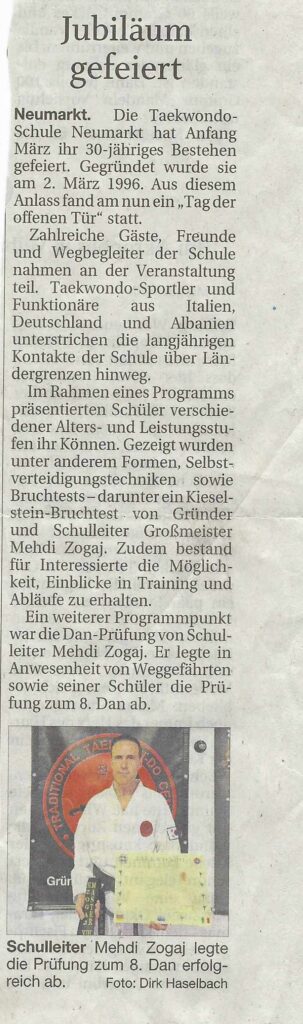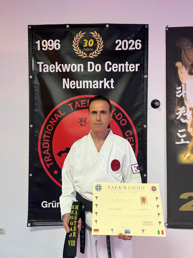 Am 07.03.2026 wurde das 30-jährige Jubiläum der Schule in Neumarkt gefeiert. Im Rahmen dieses Anlasses erhielt Sahbum-Nim Mehdi Zogaj nach erfolgreich abgelegter Prüfung den 8. DAN.